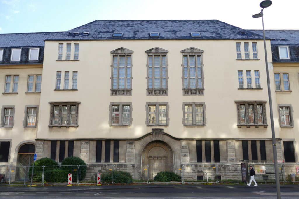 Impressionen von der ehemaligen Oberfinanzdirektion an der Riehler Straße in Köln, Stand: Winter 2025/2026. Hier sollen voraussichtlich Ende 2026 bis zu 500 Geflüchtete für jeweils einige Wochen unterkommen.